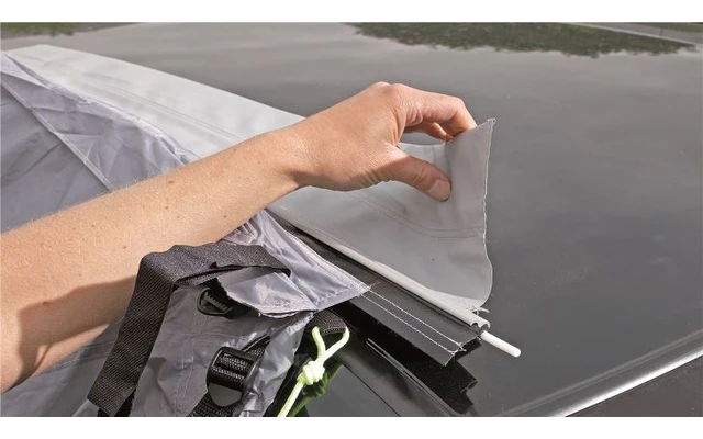 La cinghia magnetica consente di fissare saldamente il tendalino da turismo all’auto.