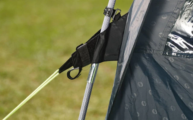 La tenda a cupola freestanding Milestone Shade è perfetta per i campeggi più piccoli. Ha una porta sul lato della Link Access Zone e un ingresso laterale, così come un binario in tessuto per la regolazione dell’altezza all’interno. La tenda da sole può essere attaccata rapidamente e facilmente agli autobus con un’altezza tra 175 e 200 cm. La porta anteriore pieghevole sotto il baldacchino arrotondato è dotata di una zanzariera e l’apertura di ventilazione in alto, protetta da un tessuto a rete, migliora il clima nella tenda. La parte anteriore può essere completamente aperta per una maggiore flessibilità: la parete anteriore e l’ingresso si aprono con una cerniera a quattro vie per creare una zona veranda protetta da una zanzariera.