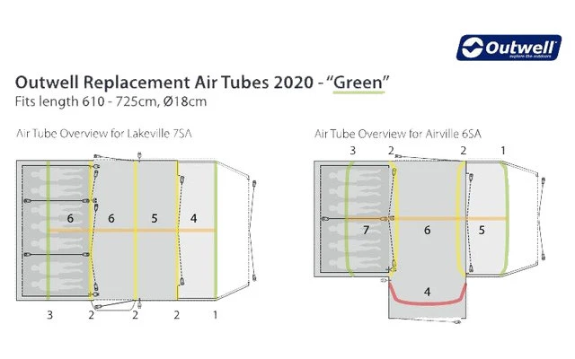 Tubi dell’aria di ricambio per le tende Outwell. Può essere arrotolato alla lunghezza appropriata